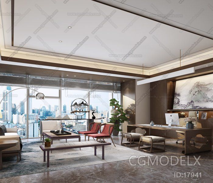 New Chinese Style Ceo Office 3D model [ID:17941]