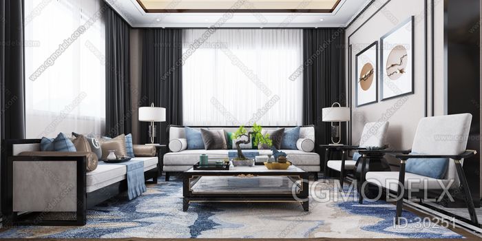 Zeling Art New Chinese Style Villa Guest Restaurant 3D model