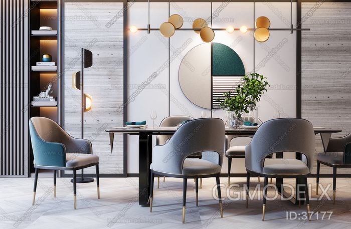 Modern Light Luxury Dining Table And Chair Combination 3D model [ID:37177]