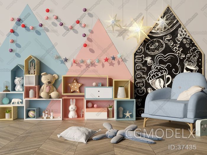 Modern Style Children's Decoration Cabinet 3D model [ID:37435]