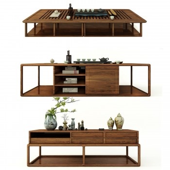 New Chinese Style Tea Table Side Cabinet Combination 3D model [ID:51648]