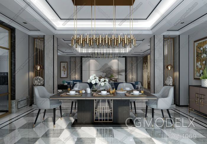 Zeling Art New Chinese Style Villa Guest Restaurant 3D model