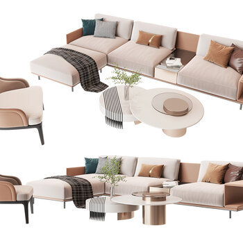 Modern Sofa And Coffee Table Combination 3D Model